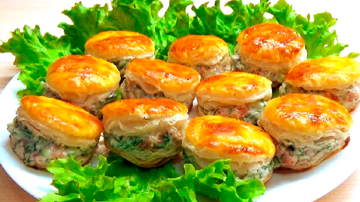 Закуска из слоеного теста с красной